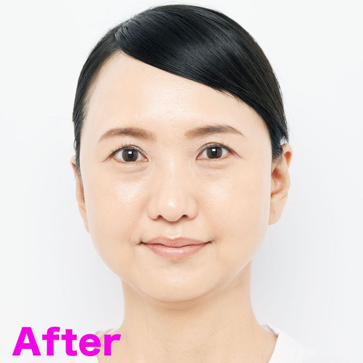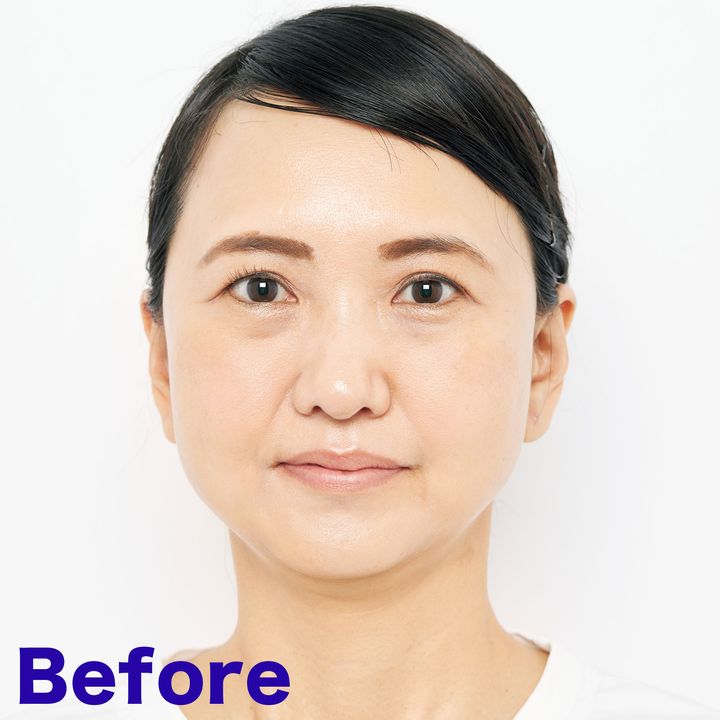 「ぷるんとしたテクスチャーで伸びが良く、すっとなじみます。超乾燥肌なのですが、使い始めたらとにかく乾かなくて驚き。まず3日ほどでトーンアップして小ジワが減り、緩んだ部分にピシッとしたハリ感が。2週間後には口周りのもたつきもスッキリ」。
