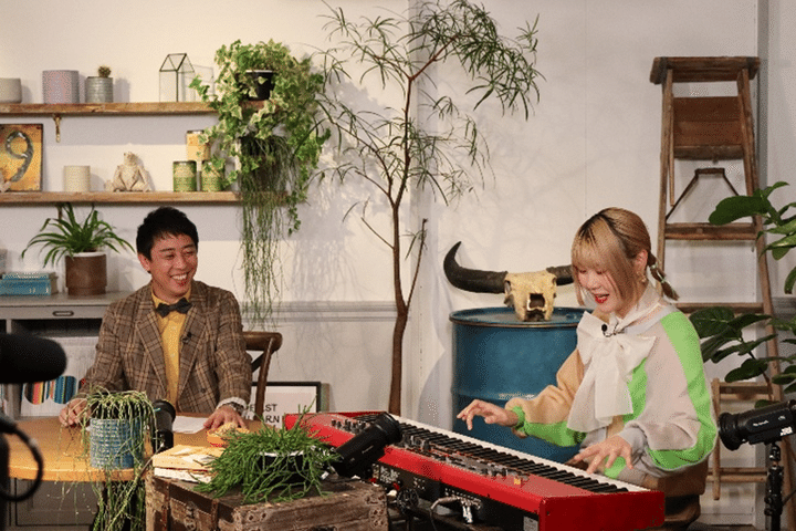 MCを務めるのは、音楽アーティストと広い交友関係を持つおしゃべりな芸人、さらば青春の光・森田哲矢と、ストリートピアノの即興演奏で大人気のポップスピアニスト、ハラミちゃん。