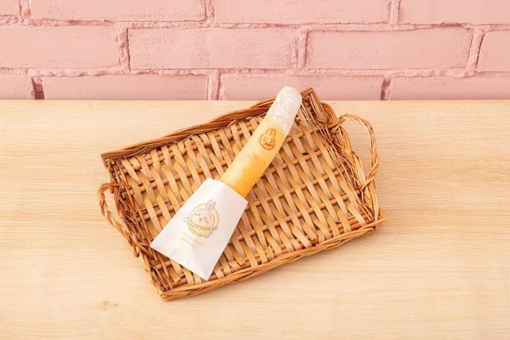 シュガーで包まれた甘いスティックパイ。ちいかわの「さすまた」をモチーフにしたユニークなパンです。