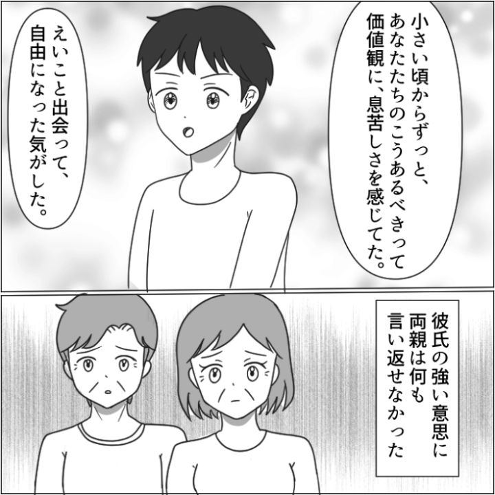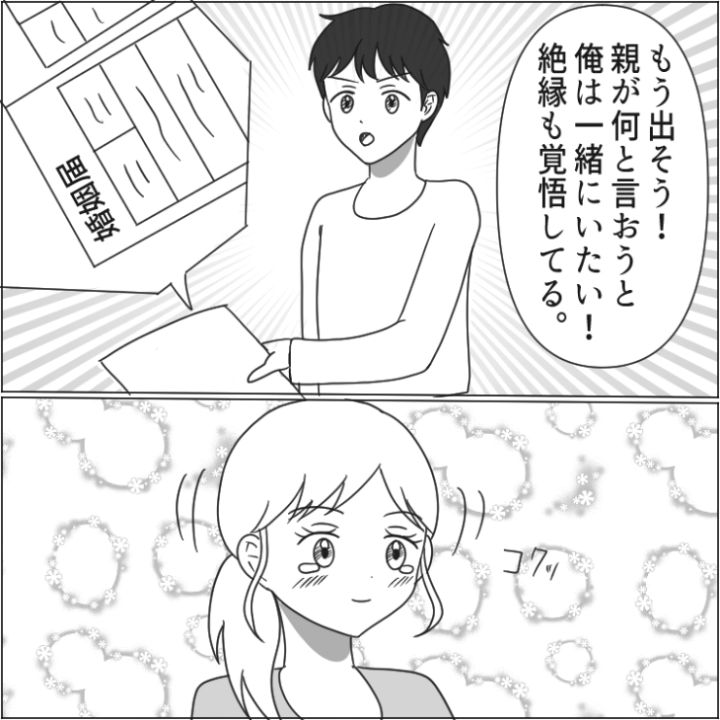 差別的な発言をされて傷ついた主人公の味方になり、家族と縁を切った彼氏。心から信頼しあって新生活をスタートさせられそうですね。