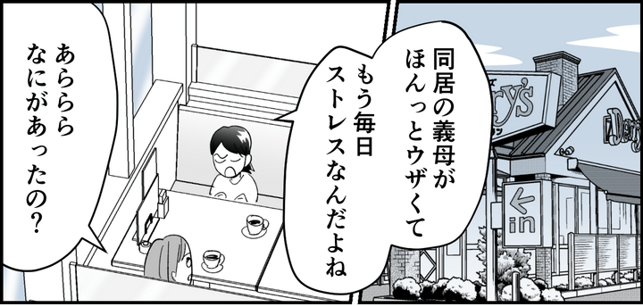 私はユリ(33)。郊外に住んでいることもあって、私の周りには実家や義両親と同居している家庭や、隣や近所に住んでいる家庭が多いです。私自身も義両親と同居しています。私には娘(小3)がひとりいて、今日は久しぶりに娘の同級生のママ友、モモコ(34)にランチに誘われてやってきました。私も義母について悩むことはありますが、モモコは性格の違いなのか、それとも義母の個性が強いためなのか、義母とうまくいかず、その悩みを私に相談してくれました。