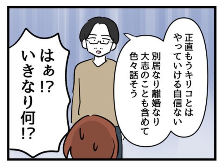 キリコに対して、ずっと不満を抱えていた、夫。キリコは不妊治療中は、イライラして周囲に当たってばかりでした。それでも、夫は、「妊娠すれば変わってくれるかも」…と、希望を抱いていたのです。