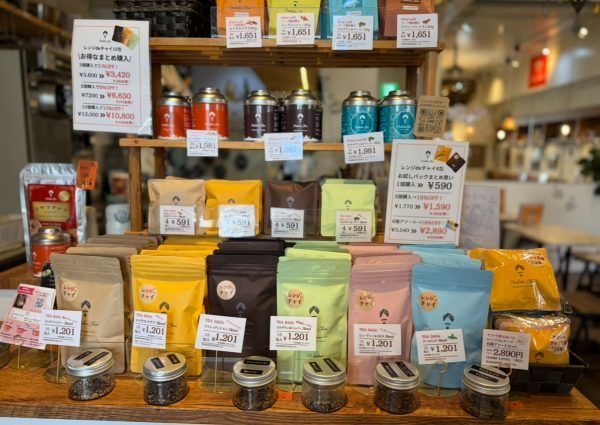 店内には、さまざまな種類の茶葉が販売されており、自宅でもモクシャチャイの味を楽しめます。