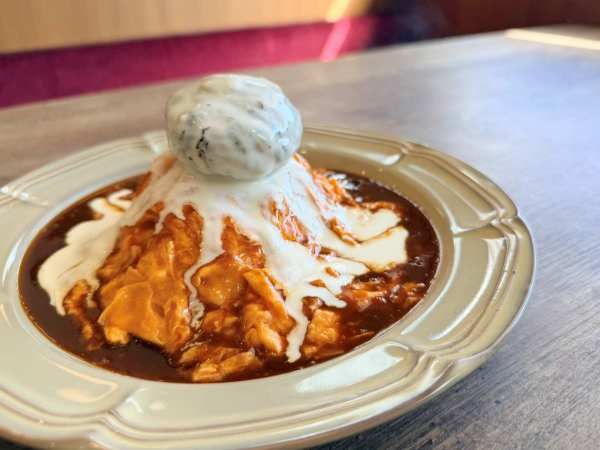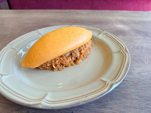 チーズがハンバーグの中からもあふれ出し、ソースと絡み合う瞬間の香りはたまりません。一口食べると、お肉の旨みと卵のやさしい甘さが絶妙にマッチ。まさに「五感で楽しむオムライス」でした!