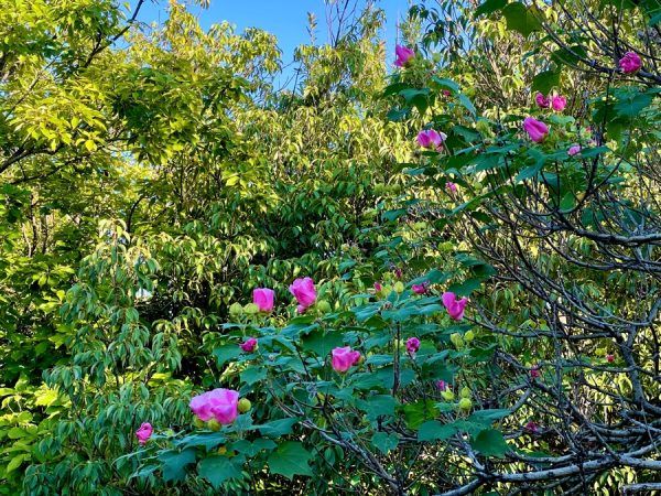 芙蓉の花が鮮やかに咲き誇り、そろそろ見納めになりそうです。