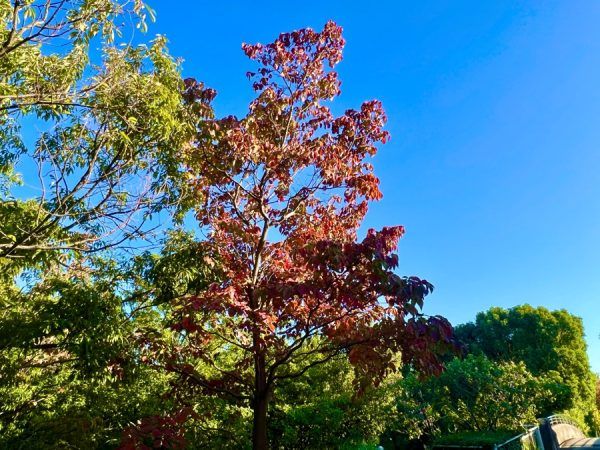 都筑区には様々な公園があり、秋のお散歩にぴったりです。公園周辺の緑道では、紅葉がちらほらと始まりました。