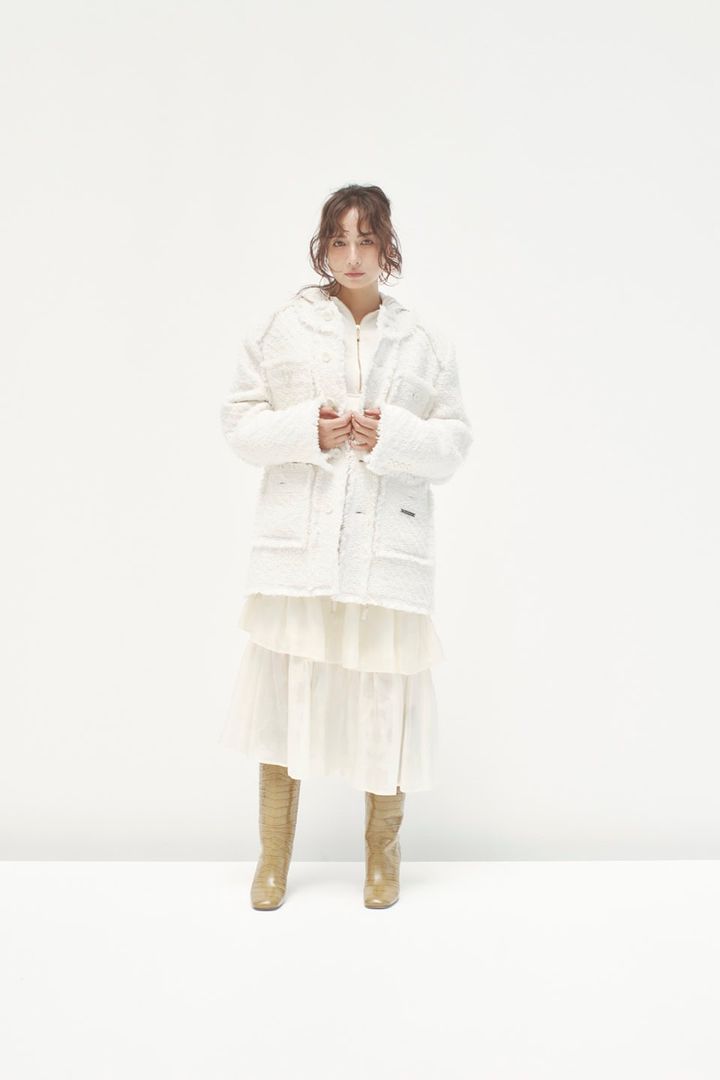 スカート¥64,900(デ・プレ)、アノラックブルゾン¥148,500(マディソンブルー)、ジャケット¥41,800(プランクプロジェクト/プランクプロジェクト 青山店)、ブーツ¥143,000(ペリーコ/アマン)