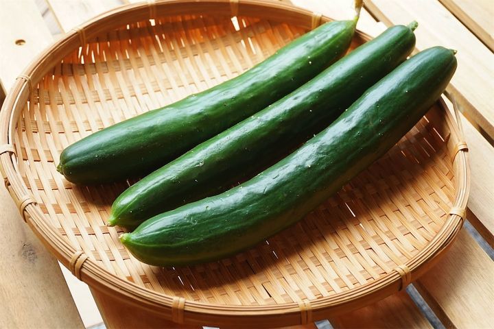 きゅうりの原産はインド北部、日本には6世紀ごろに伝わってきたと言われています。きゅうりは「胡瓜」と表記しますが、江戸時代ごろまでは「黄瓜」と書き、完熟させて黄色くなった状態で食べていたそう。しかし熟したきゅうりは大きくて苦味が強くあまり人気がなかったそうです。幕末以来、品種改良が進み、若い未熟なきゅうりは歯ごたえがよく、苦味がなくておいしいと評判になり、現在のような緑色のきゅうりが出回るようになりました。