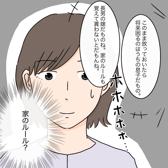 さらに義母が「このまま放っておいたら将来困るのはうちの息子だもの」と言うと、今度は別の女性が「長男の嫁だものね。家のルールも覚えてもらわないとだもんね」と義母に同情するように言いました。私はその会話を聞きながら「家のルール?」と心の中で戦々恐々としていました。