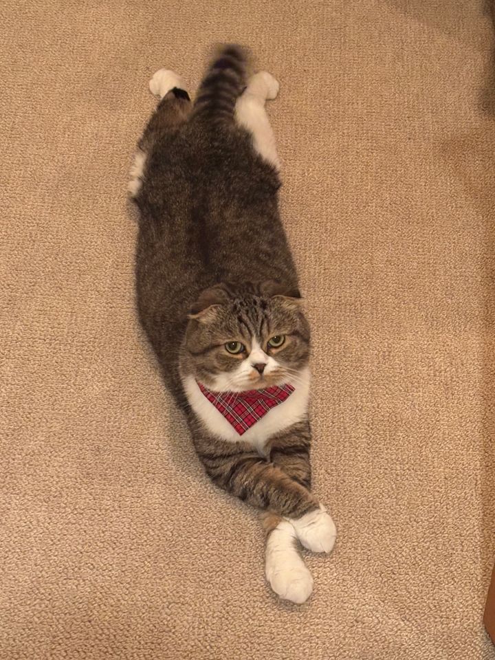 顔はそのままなんですけど、むっちゃ寂しかったんやろうなっていう気持ちが行動でわかるところがほんまにかわいいです。僕のアラームが鳴ったらベッドの上に飛び乗ってきて、ヘッドボードのところに前足をかけて(後ろ向きになって)お尻を叩いてくれって言うんですよ。なぜか叩かれるのがめっちゃ好きで、僕が寝ぼけながら軽く叩いたらゴロゴロと喉を鳴らしてます。毎朝、そういう感じですね。