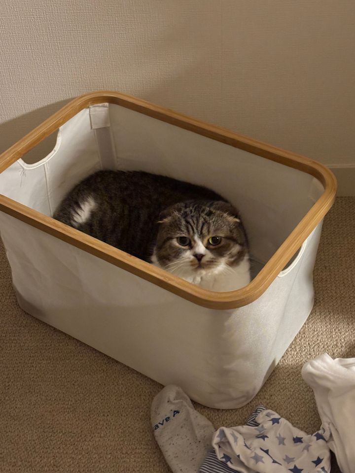 収納ボックスのなかでくつろぐうに君(阪本さん提供)