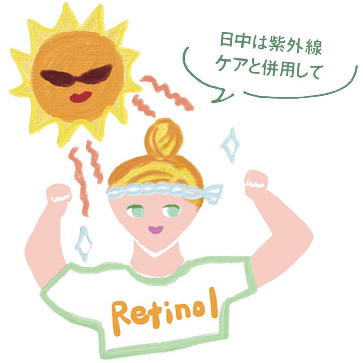 レチノールは紫外線に触れると効果が弱くなってしまうため夜の使用が推奨されますが、日光にあたっても肌が荒れるなどの害があるわけではありません。朝使用がOKの製品もあるので上手にチョイスして。