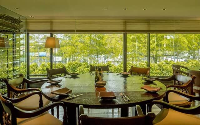 京都の古民家をコンセプトにした店内では、ゆったりとしたテーブル席から枯山水も見られます。趣の異なる半個室も4部屋用意され会食にもおすすめ。アラカルトメニューに加え季節の食材を活かした会席コースをそろえます。