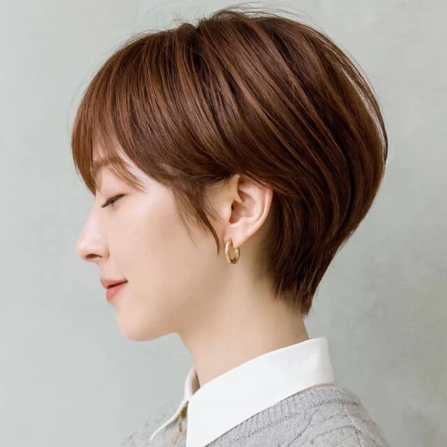 全体をコンパクトにまとめるショートは、フォルム次第で印象が大きく変わります。直線的にカットすると中性的でクールな印象に傾きやすいので、後頭部やサイドに“丸み”を出すのが正解です。
