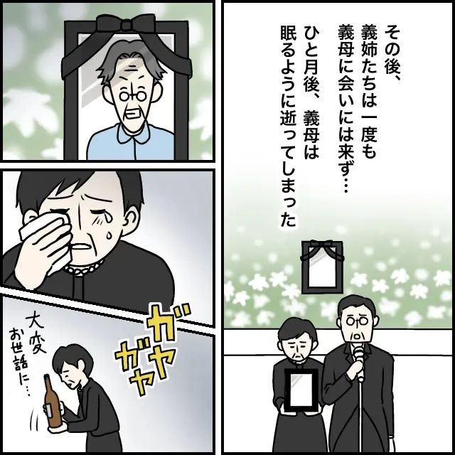 その後、義姉たちは一度も義母に会いには来ず・・ひと月後、義母は眠るように逝ってしまいました。