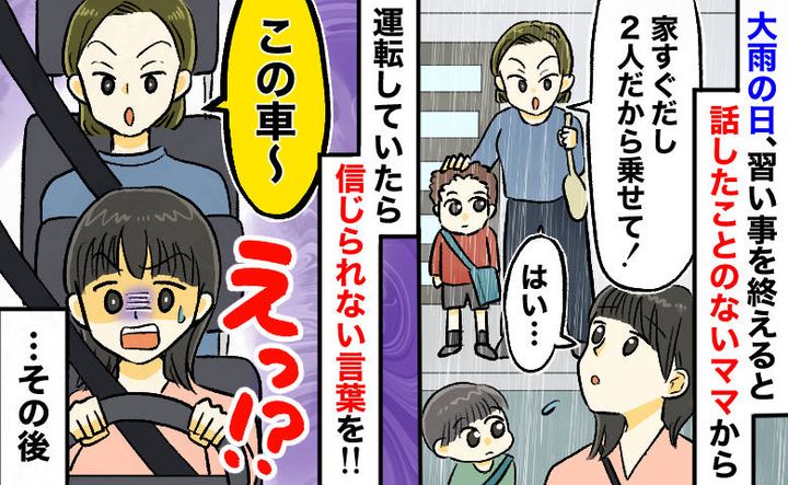 送迎便乗ママ「あなたの車さぁ〜」雨の日に“顔見知りママ”を乗せたら…運転中に信じられない発言を!?