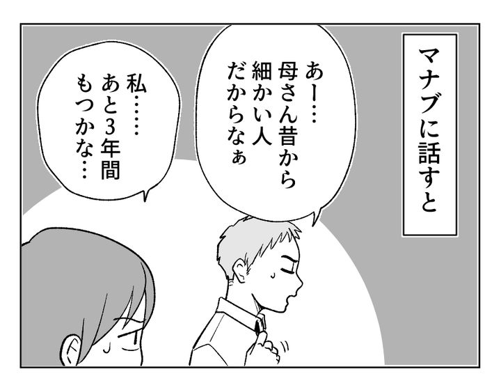 なんかうまく言いくるめられている気がしませんか? 一応マナブさんはチヒロさんの味方のようだし、お義母さんにもしっかりと言うべきことを言ってくれる人のようです。けれど大変だと嘆くチヒロさんに対して「マイホームのために頑張ろう!」と返すあたり、我慢するのはチヒロさんだけだということに、まだ気が付いていないようですね。