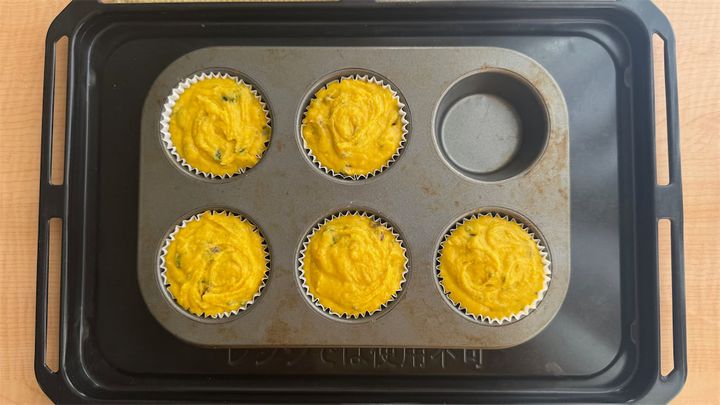 ・マフィン型にマフィンカップを入れる(両面シリコーン加工耐油紙と表記されたものがくっつきにくくておすすめです)。