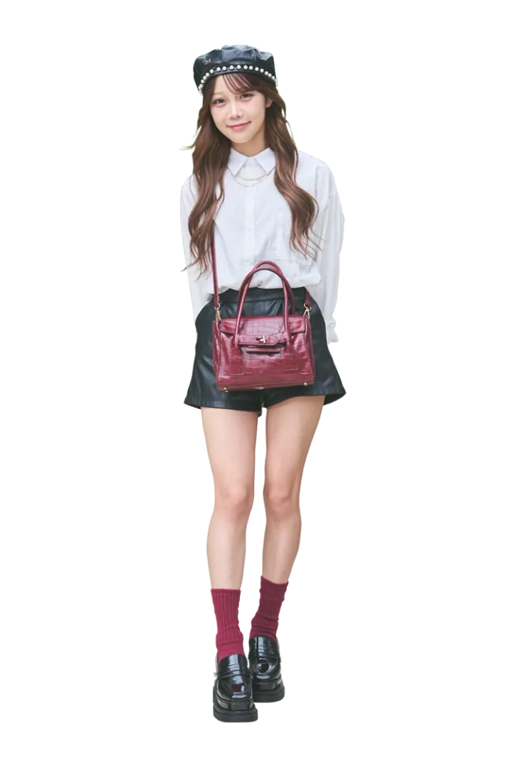 「白シャツは、約2,500円とコスパ◎。レザーショートパンツはROSEBUDで約8,000円。