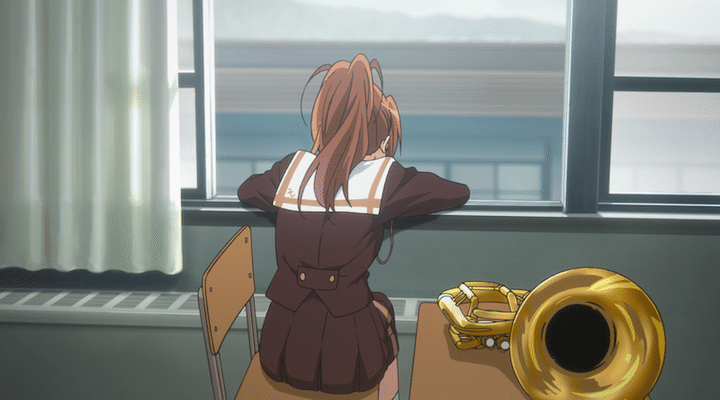 低音パートリーダーの田中あすか(CV:寿美菜子)が久美子(CV:黒沢ともよ)と葉月(CV:朝井彩加)、緑輝(CV:豊田萌絵)を連れてきたのは、楽器室。
