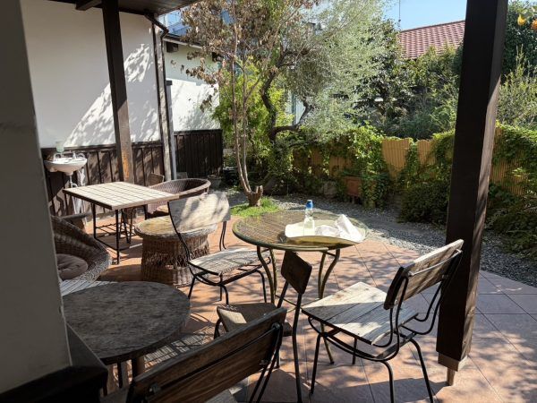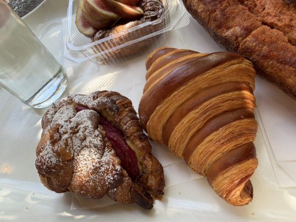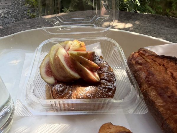なんて素敵なテラス!今の季節にちょうどいい。早速中でパンと飲み物を買ってきました。