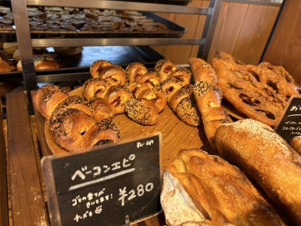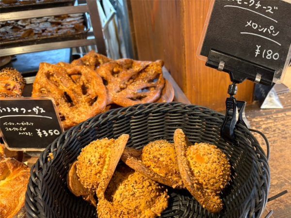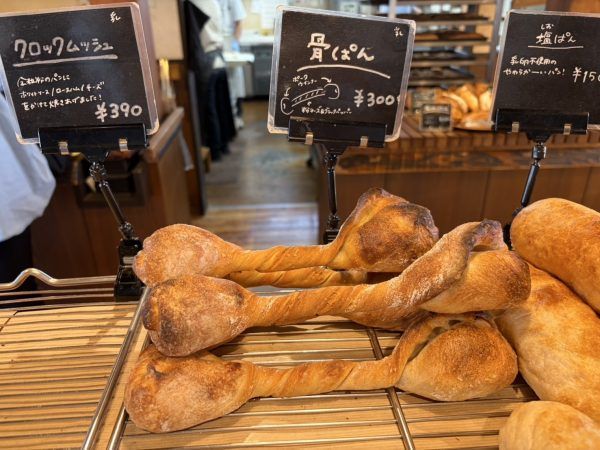 パン屋さんの中には所狭しとたくさんのパンが並んでいます。どれもこれも本当に美味しそう。 一部をご紹介します。 ↑の写真は骨パン300円。ユニークですよね。「ぱんのもっか」の大人気ぱんです。