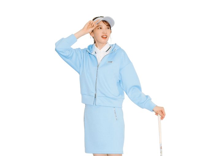 フーディ¥30,800、ポロシャツ¥23,100、スカート¥20,900、サンバイザー¥6,600、ソックス¥3,080/以上ジュン アンド ロペ(ジュン) スニーカー¥2,990/GU ゴルフクラブ/本人私物