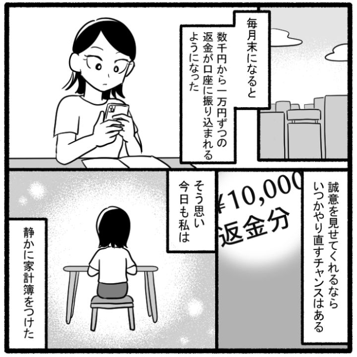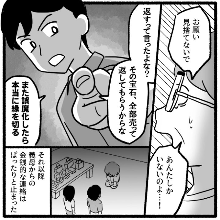 ブランドバッグや宝石に散財していた義母。少しずつだが、返金をしている義母に対して、いつかやり直せるといいなと思う主人公でした。