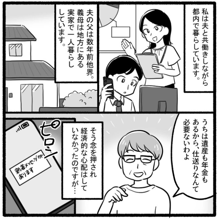 主人公は夫と共働きをしながら暮らしているアラサー女子。ある日、義母からお金の援助依頼がきて・・・。