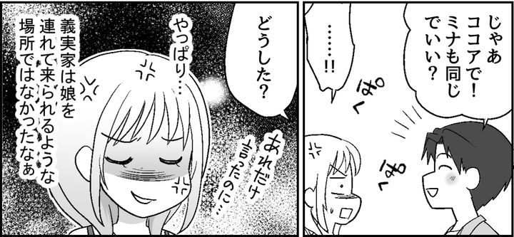 私はミナ。夫のショウタと結婚して娘のココロが生まれました。ショウタは大企業に勤めるエリートで、理想どおりの完璧な夫。一方で義両親は初対面のときから品のない言動を繰り返し、こちらが恥ずかしくなるほどでした。できるかぎり関わらないようにしてきましたが、娘が生まれると義両親からの「孫に会わせてほしい」攻撃がはじまります。今日はしぶしぶ義実家にやってきたものの、イヤな予感しかしません。