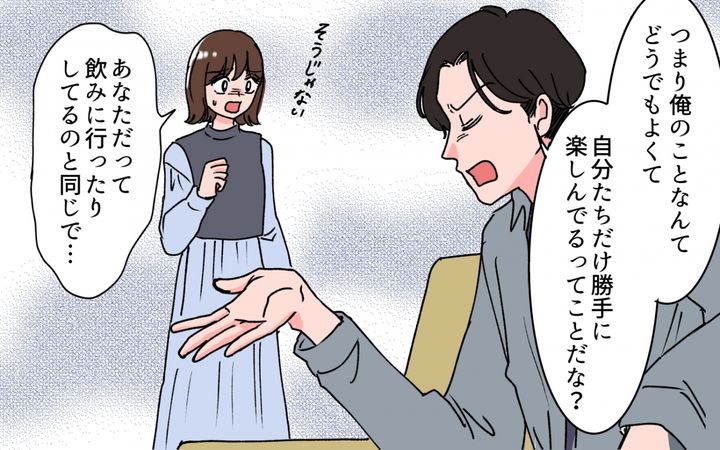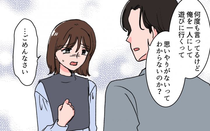 それなのに、「俺のことなんてどうでもよくて 自分たちだけ勝手に楽しんでるってことだ」「俺をひとりにして遊びに行くのは思いやりがない」と、ネチネチ責められ、一方的なルールを突きつけてきました。