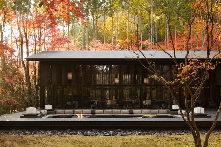 京都・鷹峯の森の中に佇むアマン京都のレストラン「ザ・リビング パビリオン by アマン」では、色づきはじめる庭を眺めながら秋の味覚を楽しめる2つのランチメニューを提供している。