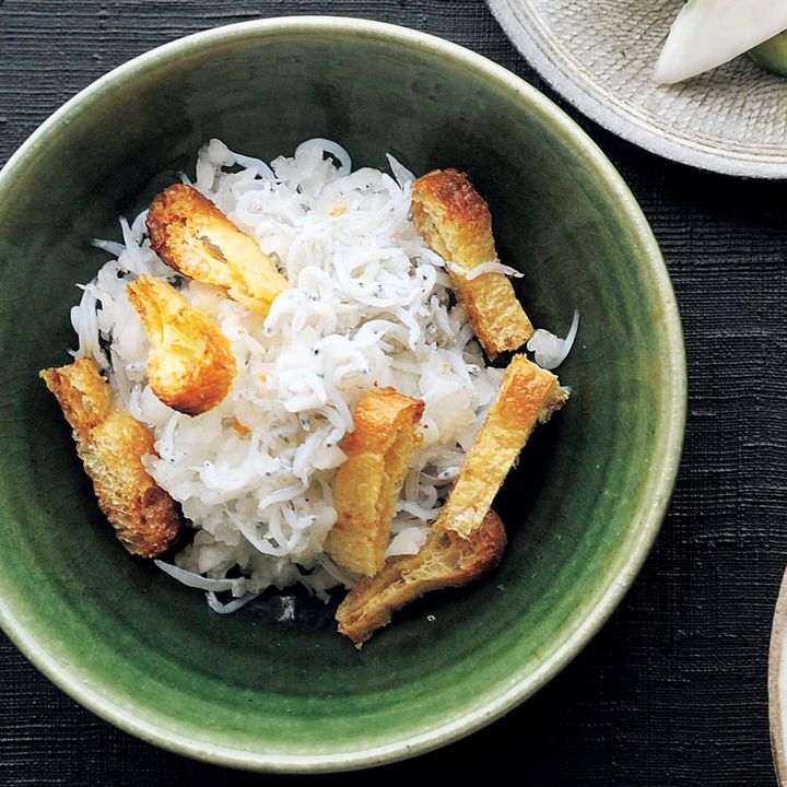 ③❶としらすを混ぜ、❷をのせる。