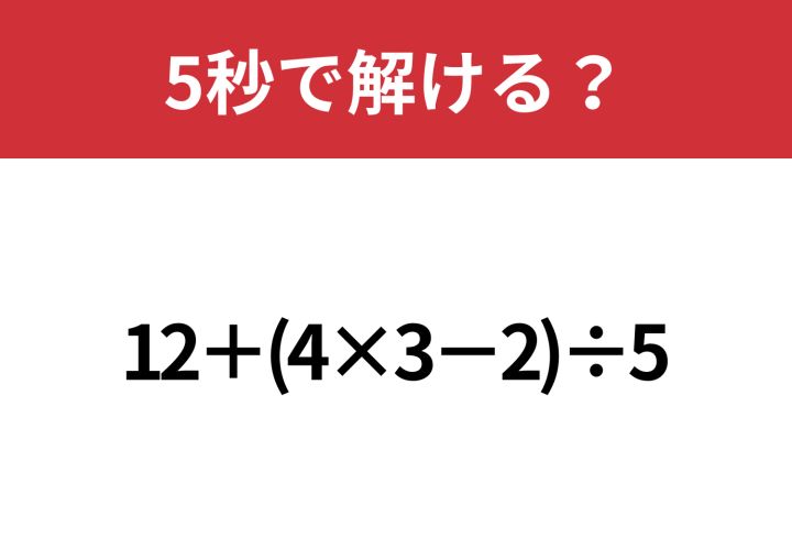 基本を思い出して解いてみて!「12+(4×3−2)÷5」5秒で解ける?