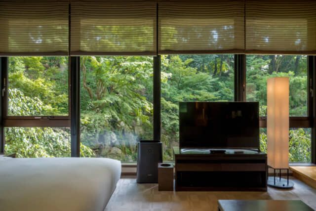 上質で古都の風情を感じられる【ハイアット リージェンシー 京都】の客室。このほかにも日本の伝統色を採り入れた「KYOTOスイート」や2部屋の寝室を備えた最上級の「リージェンシースイート」を用意。千年の歴史に彩られた京都・東山で、ゆったりと過ごすひと時を味わってみてくださいね。<text&photo:湯川カオル子 予約・問:ハイアット リージェンシー 京都 https://www.hyatt.com/hyatt-regency/ja-JP/kyoto-hyatt-regency-kyoto>