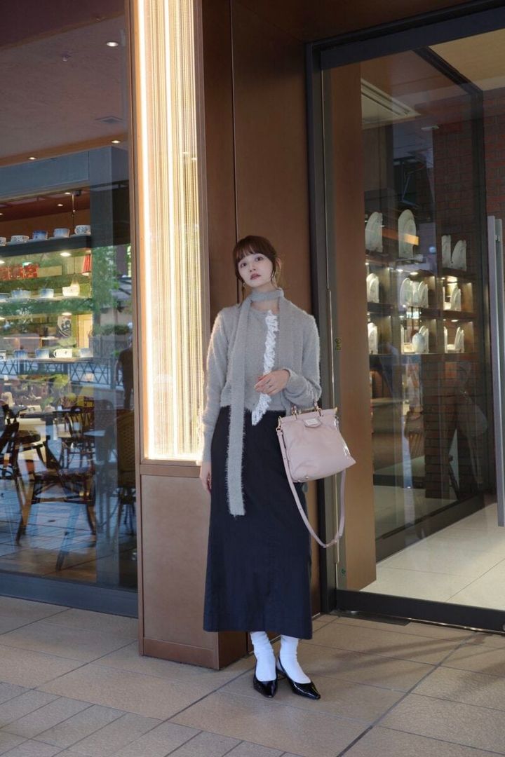 3. 韓国ブランド「GIUNON」を取り入れて♡ タイ付きカーデ×ペンシルスカートでハンサムガーリーを意識