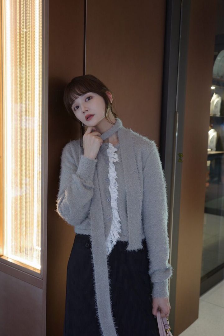 韓国ブランド「GIUNON」を取り入れて♡ タイ付きカーデ×ペンシルスカートでハンサムガーリーを意識