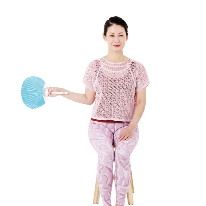 肩の痛みが強くて「基本のうちわあおぎ」が難しい場合はこちらから挑戦を。うちわを開く角度を狭めて小刻みにあおぐイメージです。やりづらい場合は、うちわを持たないほうの手で反対側の鎖骨の下を押さえながら行うとスムーズ。