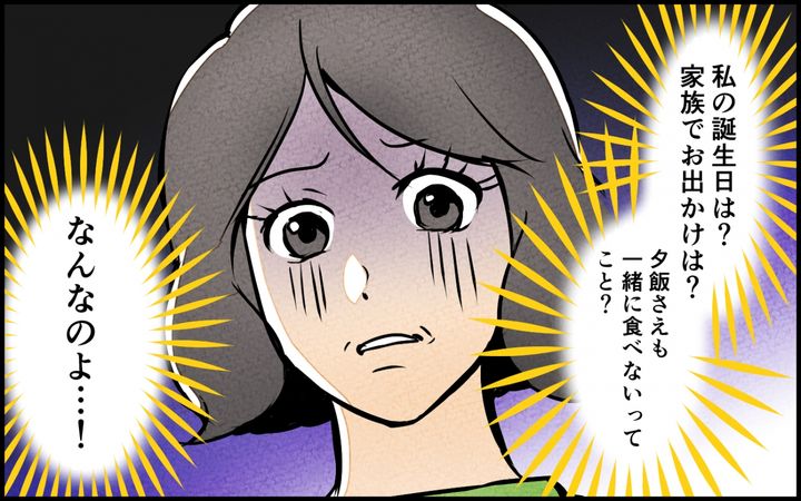 ■これまでのあらすじ 夫が自分にだけ冷たい気がすることに妻は悩んでいた。ある日、夫のスマホに女性からメールが届く。裏切りの予感に不安が募るなか、夫が週末出かけようと言い出す。自分の誕生日を祝ってくれるのかと期待した妻だったが、前の晩、酔って帰宅した夫から暴言を吐かれて…。