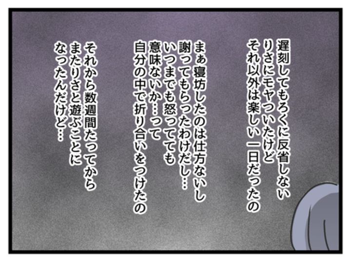 りさと子どもを含め遊ぶようになったはるかですが、時間やお金に対する価値観のズレが大きいことに気づき、一緒に遊ぶ中ではるかはストレスを貯めていきます。そして、共通の友人であるゆかりに、りさについて相談しました。するとゆかりは自分にも同じような経験があると話をしてくれたのですが…。
