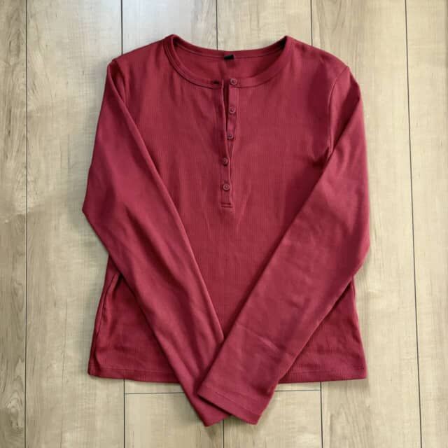 大人が着ても浮かない旬な“赤”。骨スト&イエベ秋に似合う【ユニクロ】名品「リブヘンリーネックT」