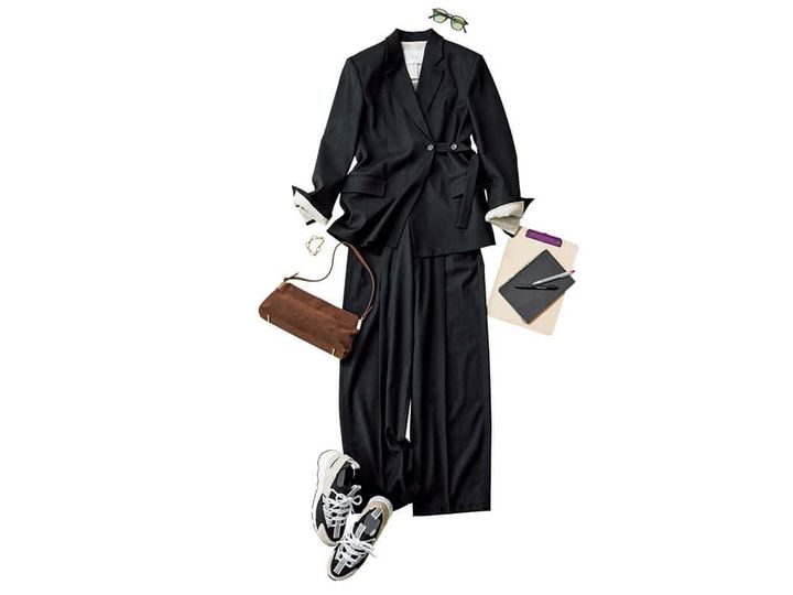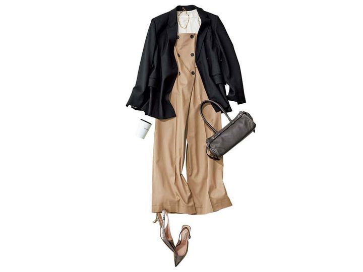 ジャケット¥83,160(テラ/ティースクエア プレスルーム)オールインワン¥45,980(ユナイテッドアローズ/ユナイテッドアローズ 麻布台ヒルズ ウィメンズストア)カットソー¥9,900(MIESROHE/MIESROHE ルミネ新宿1店)バッグ¥23,100(AULENTTI/ドレステリア 渋谷スクランブルスクエア店)パンプス¥17,600(ダイアナ/ダイアナ 銀座本店)ネックレス¥9,900(アビステ)