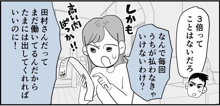 旦那は小さいけれど会社を経営しています。だから比較的田村さんよりはいい年収かもしれません。でもお金持ちというわけではないし、余裕があるなら子どもたちのためにも貯めておくべきですよね? 田村さんにいい肉を食べさせるのに使うんじゃなくて。