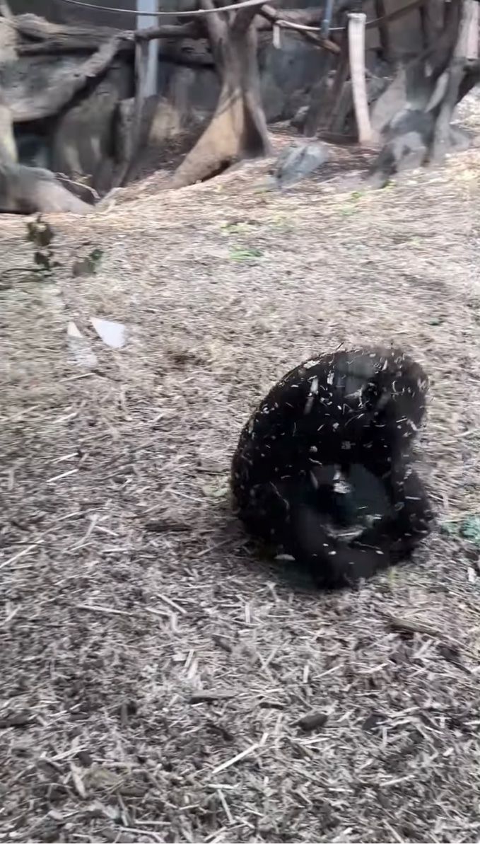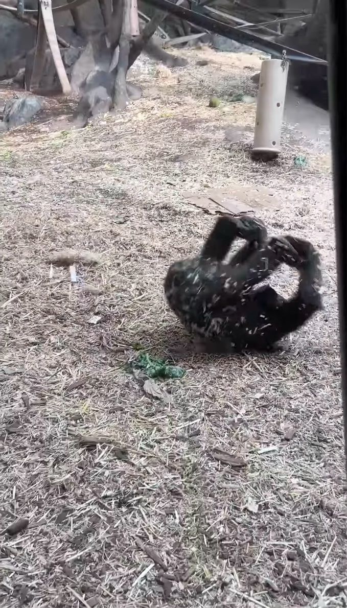 コロコロとでんぐり返しをしながら登場した赤ちゃんゴリラ。 転がるのがよほど楽しいのか、この子はそのままどこまでもでんぐり返しで進んでいくのでした。