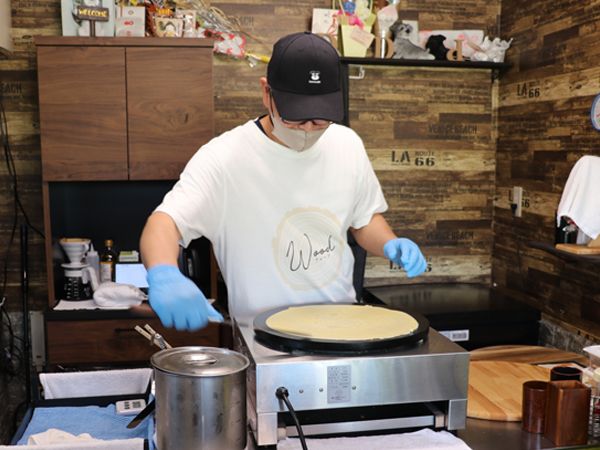 2025年4月にオープンした同店は、前職で建設関係の仕事をしていたというオーナーが始めたお店です。ひとりでコツコツ改装したのだそう。店名のとおり“木”をイメージさせる壁紙や床の店内には、木のベンチが置いてあったり、フィギュアが飾ってあったり…オーナーの“好き”があふれています。テイクアウト専門なのであまり広くはない店内ですが、その分、クレープを作っているところが見えたり、お客さんとの距離も近くてあたたかい雰囲気を感じました。