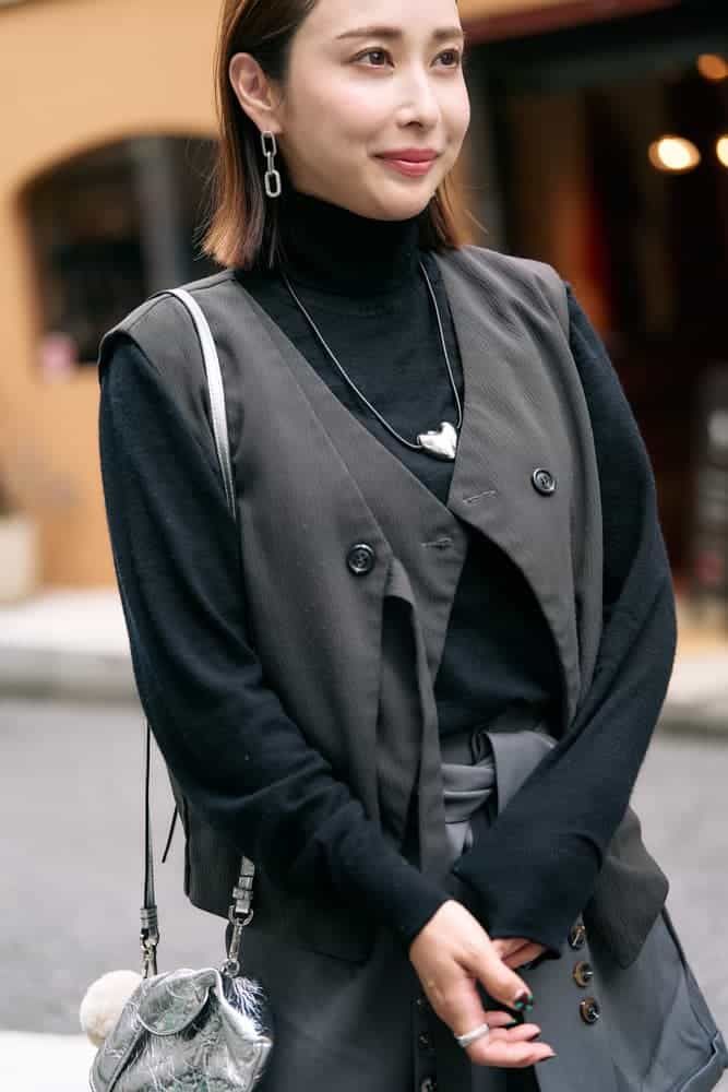 色味を揃えつつレイヤードで立体感のあるスタイルを