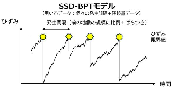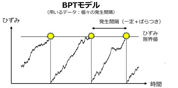 地震の確率の計算方法には様々な提案がありますが、政府の地震調査委員会が過去からの地震の発生履歴を使った方法の一つが「BPTモデル」というものです。