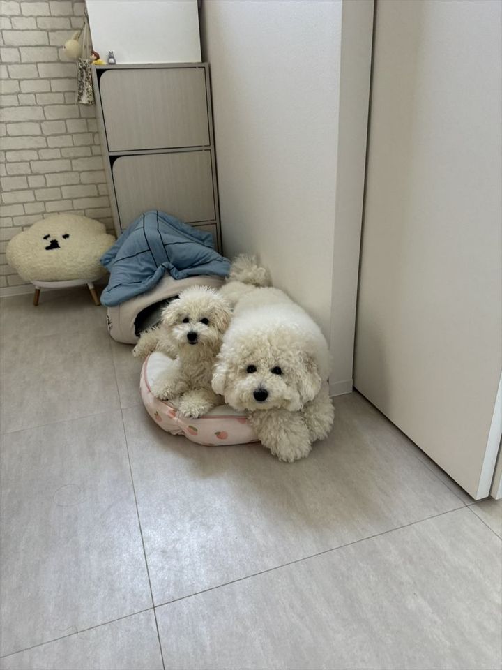 ご紹介するのは、ビションフリーゼのぽむとぷりん(@pom__pudding)さんがXに投稿された写真です。