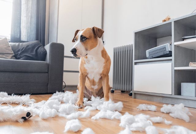 すると、していない方は私の目をじっと見つめ、イタズラした方はキョロキョロと落ち着きがありません。 「あ、怒られることをしたってわかってるんだな」と思い、思わず笑ってしまいました。 これが初めてではないので、「壊していいのは犬用のおもちゃだけだよ」と改めて伝えました。