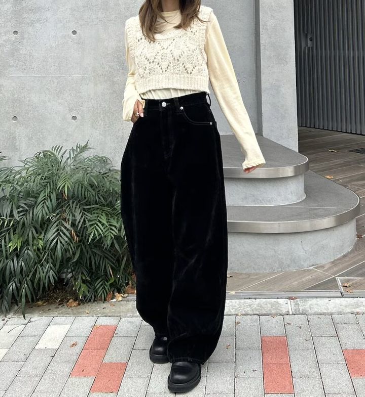 1. ワイドパンツ×だぼトップスで「ずんぐり見え」